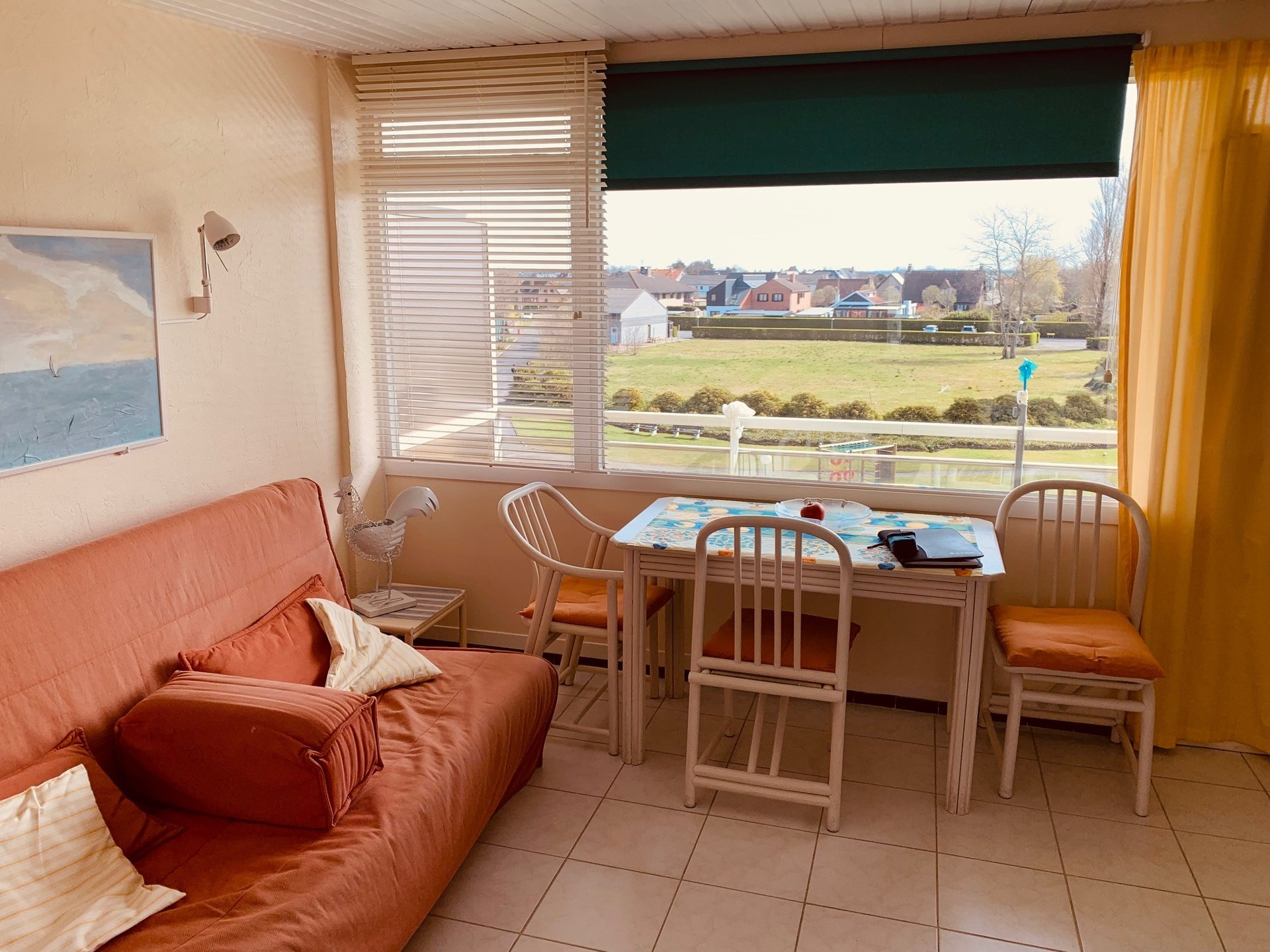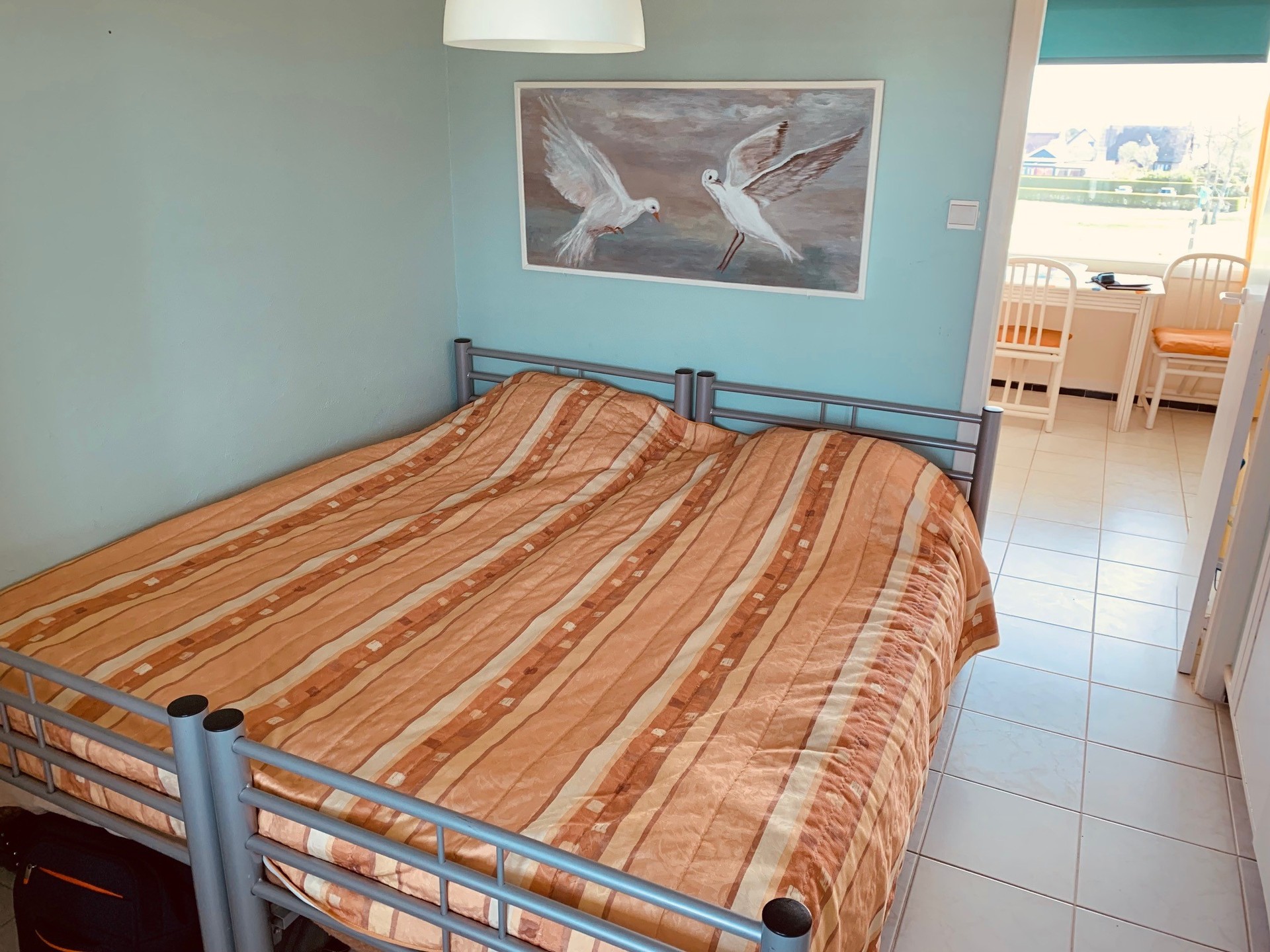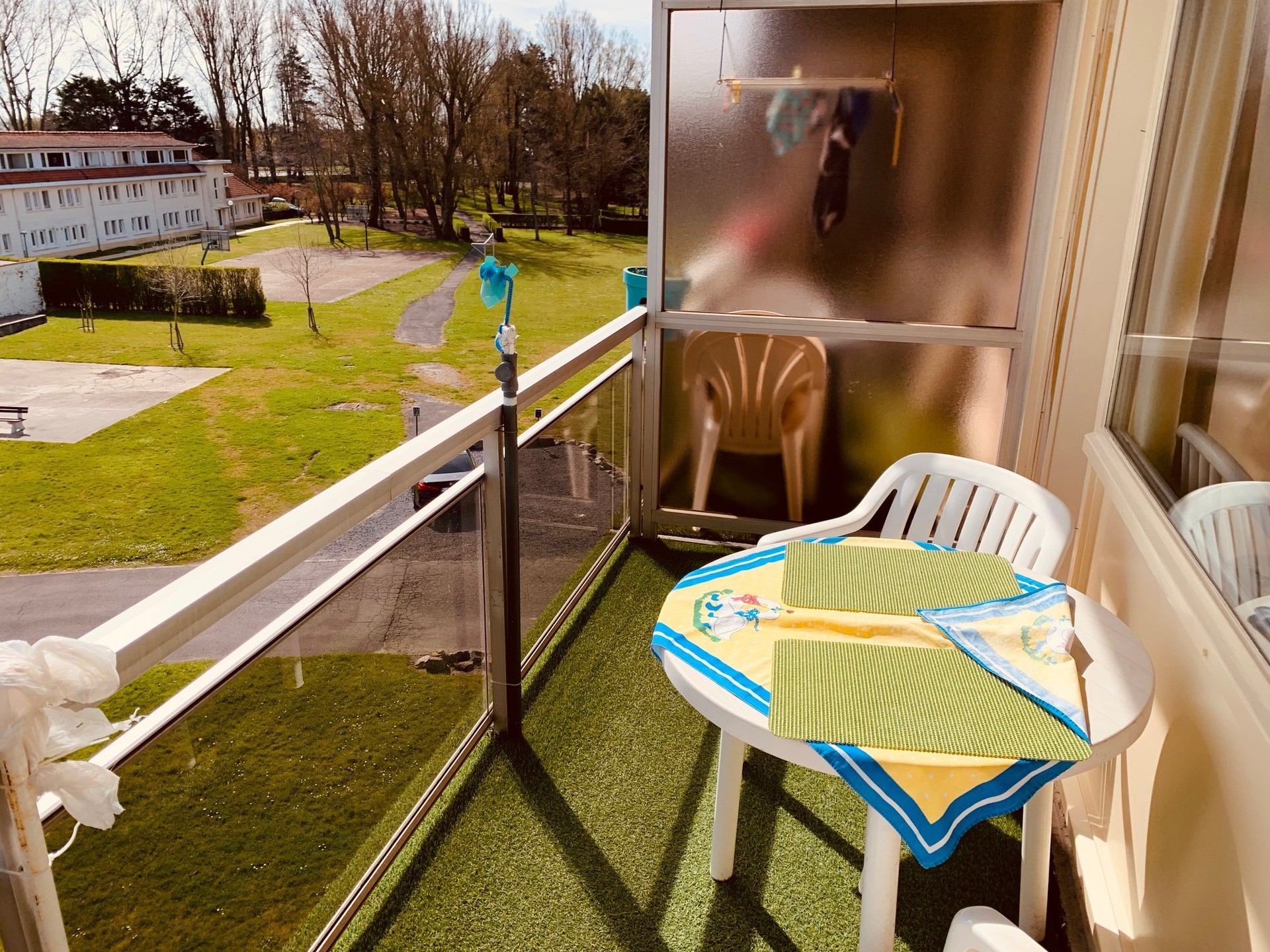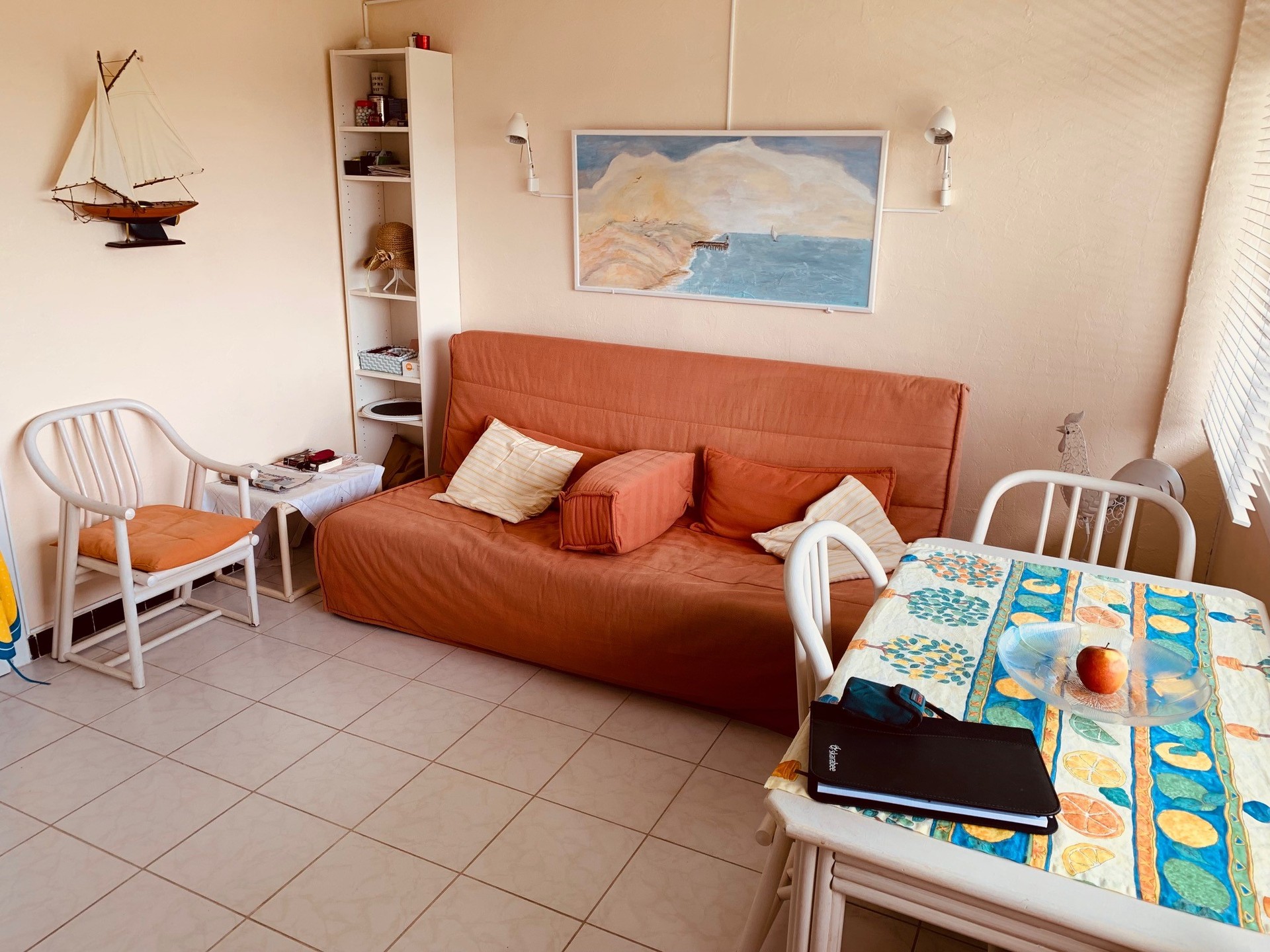 Consists of: Living room with kitchen and terrace, renovated bathroom with toilet, 1 bedroom and a private cellar.Large parking in the domain.Various accommodation possibilities: tennis court, basketball court, petanque, table tennis and playground for the little ones. Domicile not possible.
